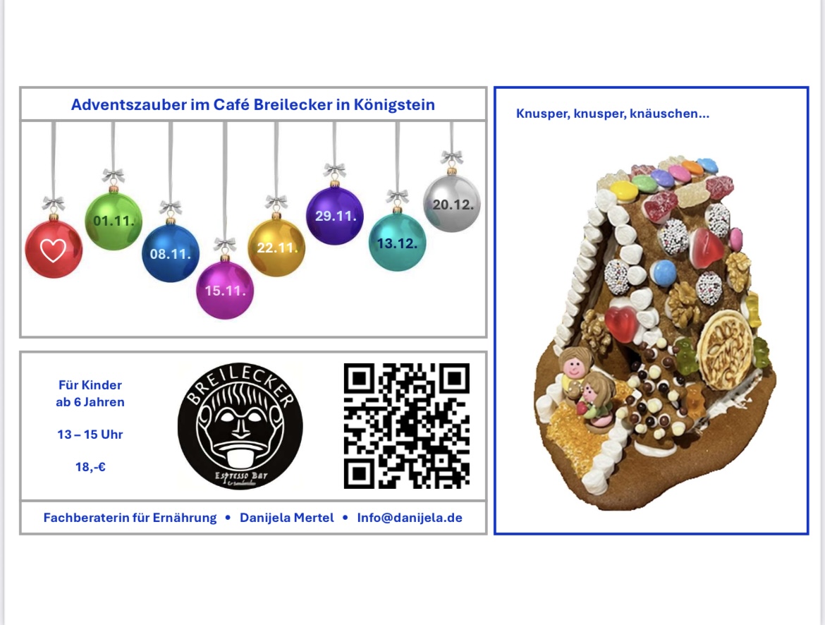 Herzliche Einladung der Fachberaterin für Ernährung, Danijela Mertel, zum Adventszauber im Café Breilecker.✨