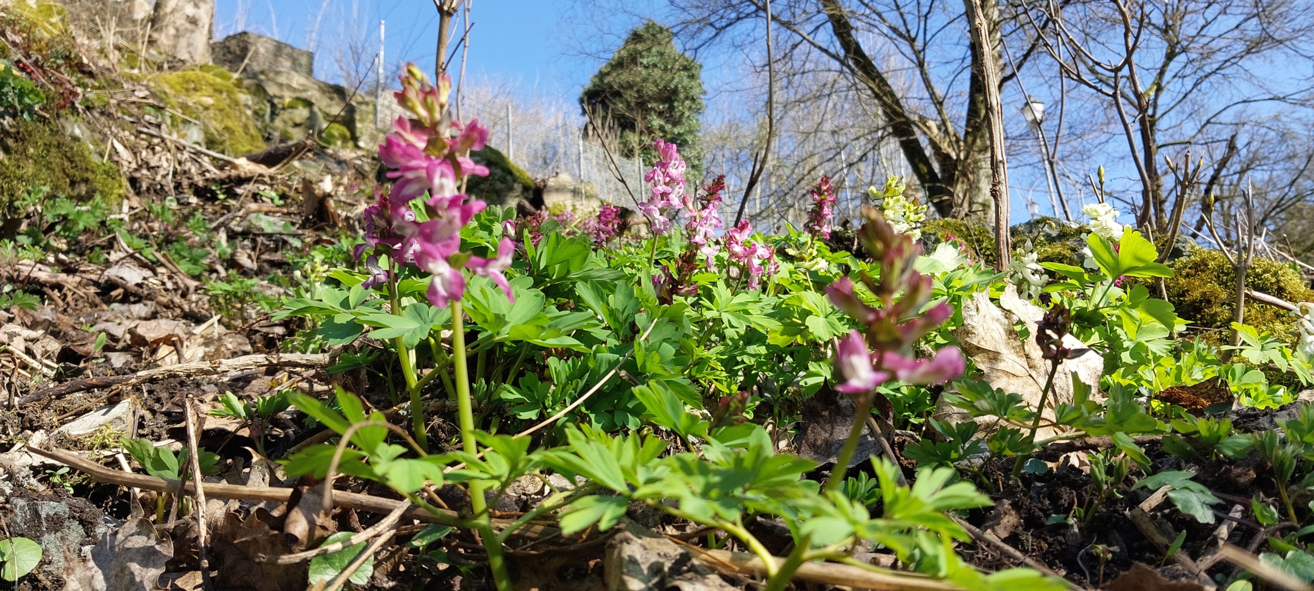 Hoch auf dem Königsteiner Burgberg thront erhaben die mächtige Burgruine. Der Burgberg ist ein bewaldeter großer Fels mit rauer Natur. Doch im Frühjahr entwickelt dieser eine ungewohnte Vielfalt: Mit den ersten warmen Sonnenstrahlen erwachen zarte Pflänzchen aus dem Winterschlaf und bedecken ihn weitläufig: die Frühblüher.