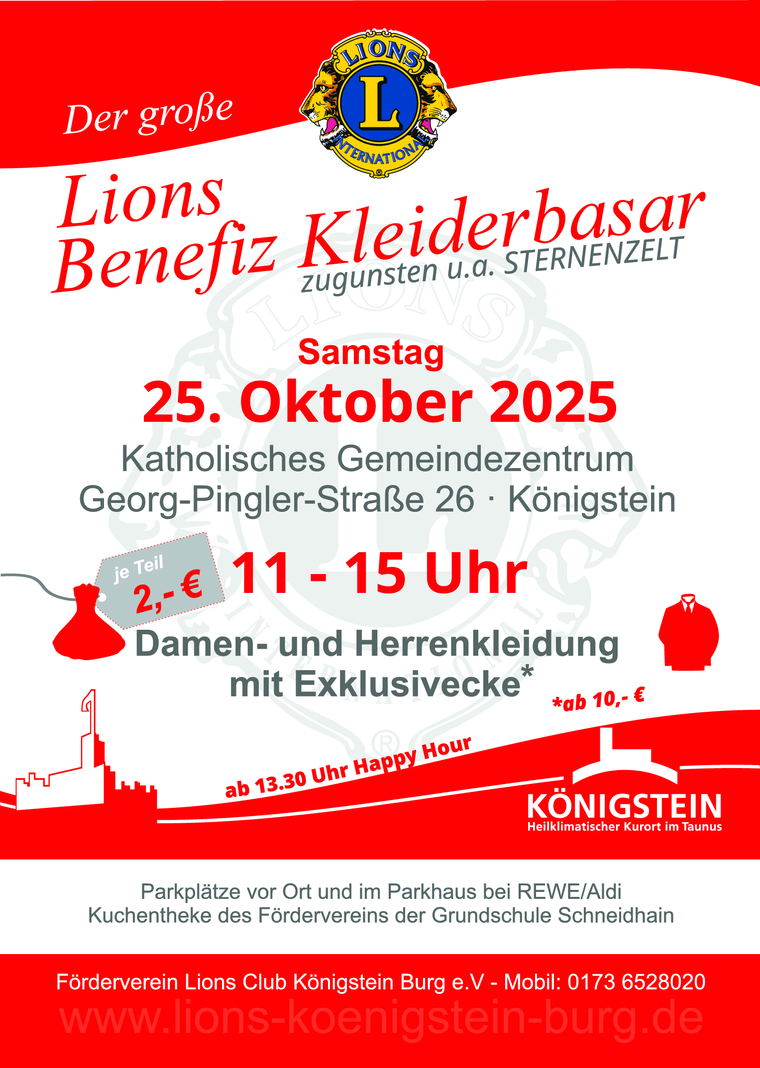Der Lions-Förderverein Königstein Burg e.V. lädt Sie herzlich ein, beim großen Benefiz-Kleiderbasar vorbeizuschauen – zugunsten unter anderem von STERNENZELT.