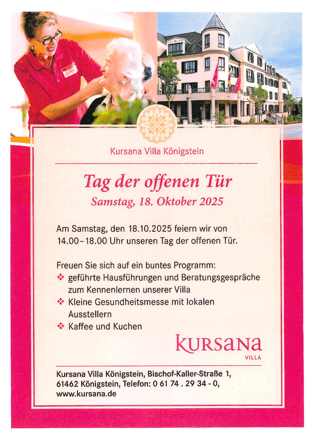 Tag der offenen Tür im Kursana Königstein Okt. 18 14:00 - 18:00 Tag der offenen Tür im Kursana Königstein